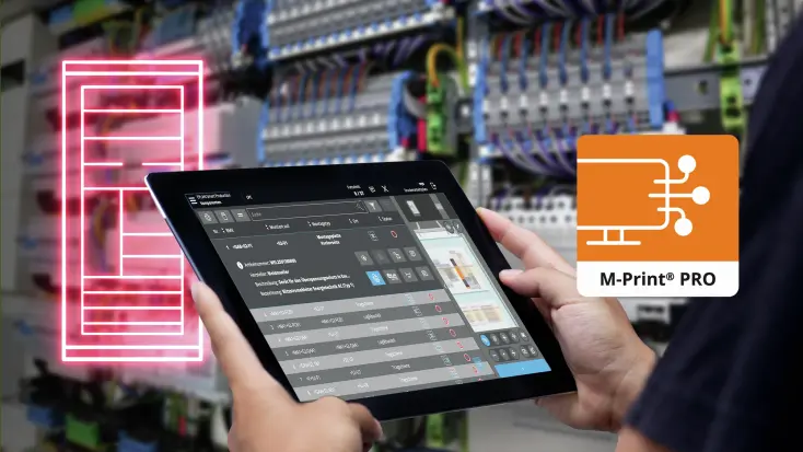 Dankzij de naadloze integratie van de digitale twin off Eplan Pro Panel en geautomatiseerde bedrijfsmiddelmarkering bespaart u kostbare tijd en voorkomt u transmissiefouten. De printgegevens worden rechtstreeks naar M-Print® PRO verzonden - inclusief de optionele AutoPrint-modus, die labels onmiddellijk en zonder nabewerking afdrukt.